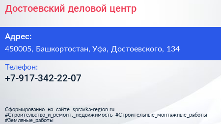 Достоевский, деловой центр по адресу 450005, Башкортостан, Уфа, Достоевского, 134 в дальнейшем Организация, размещена в следующих категориях: