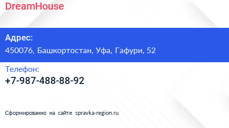 DreamHouse по адресу 450076, Башкортостан, Уфа, Гафури, 52 в дальнейшем Организация, размещена в следующих категориях: