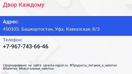 Двор Каждому по адресу 450103, Башкортостан, Уфа, Кавказская, 8/3 в дальнейшем Организация, размещена в следующих категориях: