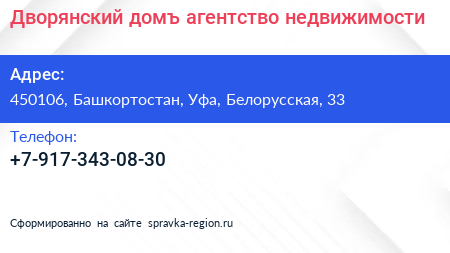 Дворянский домъ, агентство недвижимости по адресу 450106, Башкортостан, Уфа, Белорусская, 33 в дальнейшем Организация, размещена в следующих категориях: