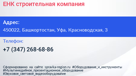 ЕНК, строительная компания по адресу 450022, Башкортостан, Уфа, Красноводская, 3 в дальнейшем Организация, размещена в следующих категориях: