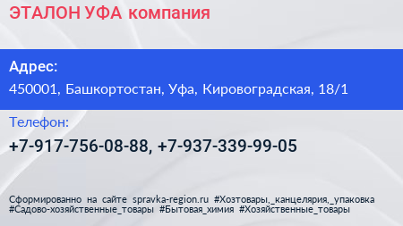 ЭТАЛОН УФА, компания по адресу 450001, Башкортостан, Уфа, Кировоградская, 18/1 в дальнейшем Организация, размещена в следующих категориях: