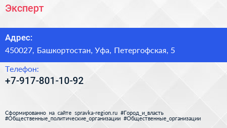 Эксперт по адресу 450027, Башкортостан, Уфа, Петергофская, 5 в дальнейшем Организация, размещена в следующих категориях: