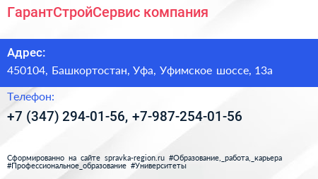 ГарантСтройСервис, компания по адресу 450104, Башкортостан, Уфа, Уфимское шоссе, 13а в дальнейшем Организация, размещена в следующих категориях:
