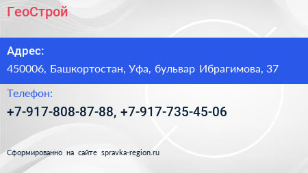 ГеоСтрой по адресу 450006, Башкортостан, Уфа, бульвар Ибрагимова, 37 в дальнейшем Организация, размещена в следующих категориях: