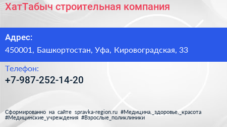 ХатТабыч, строительная компания по адресу 450001, Башкортостан, Уфа, Кировоградская, 33 в дальнейшем Организация, размещена в следующих категориях: