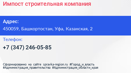 Импост, строительная компания по адресу 450059, Башкортостан, Уфа, Казанская, 2 в дальнейшем Организация, размещена в следующих категориях: