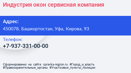 Индустрия окон, сервисная компания по адресу 450078, Башкортостан, Уфа, Кирова, 93 в дальнейшем Организация, размещена в следующих категориях: