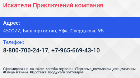 Искатели Приключений, компания по адресу 450077, Башкортостан, Уфа, Свердлова, 98 в дальнейшем Организация, размещена в следующих категориях: