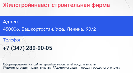 Жилстройинвест, строительная фирма по адресу 450006, Башкортостан, Уфа, Ленина, 99/2 в дальнейшем Организация, размещена в следующих категориях: