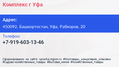 Комплекс, г. Уфа по адресу 450092, Башкортостан, Уфа, Рабкоров, 20 в дальнейшем Организация, размещена в следующих категориях: