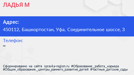 ЛАДЬЯ-М по адресу 450112, Башкортостан, Уфа, Соединительное шоссе, 3 в дальнейшем Организация, размещена в следующих категориях: