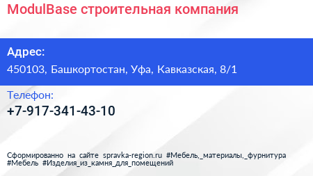 ModulBase, строительная компания по адресу 450103, Башкортостан, Уфа, Кавказская, 8/1 в дальнейшем Организация, размещена в следующих категориях: