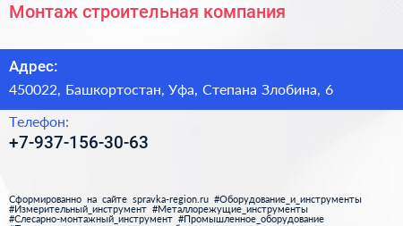 Монтаж, строительная компания по адресу 450022, Башкортостан, Уфа, Степана Злобина, 6 в дальнейшем Организация, размещена в следующих категориях: