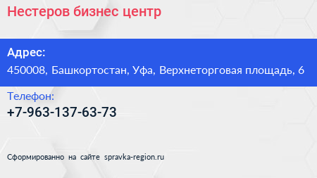Нестеров, бизнес-центр по адресу 450008, Башкортостан, Уфа, Верхнеторговая площадь, 6 в дальнейшем Организация, размещена в следующих категориях: