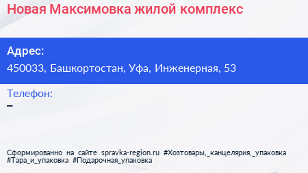 Новая Максимовка, жилой комплекс по адресу 450033, Башкортостан, Уфа, Инженерная, 53 в дальнейшем Организация, размещена в следующих категориях: