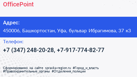 OfficePoint по адресу 450006, Башкортостан, Уфа, бульвар Ибрагимова, 37 к3 в дальнейшем Организация, размещена в следующих категориях: