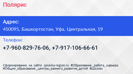 Полярис по адресу 450095, Башкортостан, Уфа, Центральная, 19 в дальнейшем Организация, размещена в следующих категориях:
