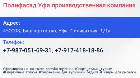 Полифасад Уфа, производственная компания по адресу 450003, Башкортостан, Уфа, Силикатная, 1/1а в дальнейшем Организация, размещена в следующих категориях:
