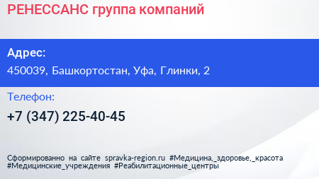 РЕНЕССАНС, группа компаний по адресу 450039, Башкортостан, Уфа, Глинки, 2 в дальнейшем Организация, размещена в следующих категориях: