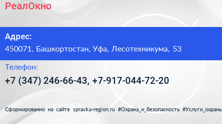 РеалОкно по адресу 450071, Башкортостан, Уфа, Лесотехникума, 53 в дальнейшем Организация, размещена в следующих категориях: