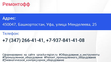 Ремонтофф по адресу 450047, Башкортостан, Уфа, улица Менделеева, 25 в дальнейшем Организация, размещена в следующих категориях: