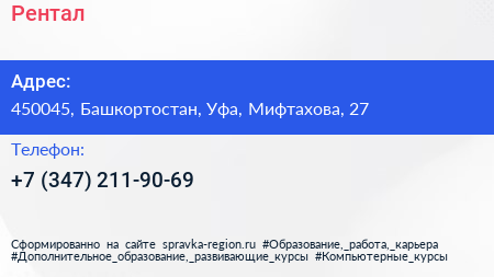 Рентал по адресу 450045, Башкортостан, Уфа, Мифтахова, 27 в дальнейшем Организация, размещена в следующих категориях: