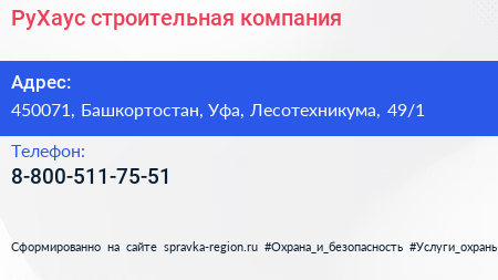 РуХаус, строительная компания по адресу 450071, Башкортостан, Уфа, Лесотехникума, 49/1 в дальнейшем Организация, размещена в следующих категориях: