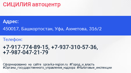 СИЦИЛИЯ, автоцентр по адресу 450017, Башкортостан, Уфа, Ахметова, 316/2 в дальнейшем Организация, размещена в следующих категориях: