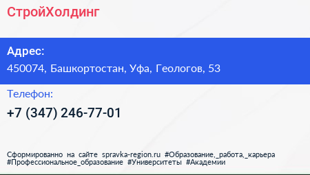 СтройХолдинг по адресу 450074, Башкортостан, Уфа, Геологов, 53 в дальнейшем Организация, размещена в следующих категориях: