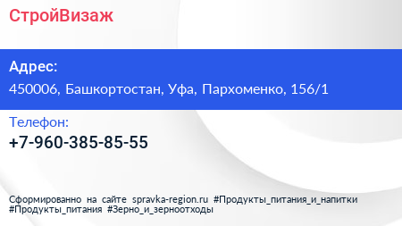 СтройВизаж по адресу 450006, Башкортостан, Уфа, Пархоменко, 156/1 в дальнейшем Организация, размещена в следующих категориях: