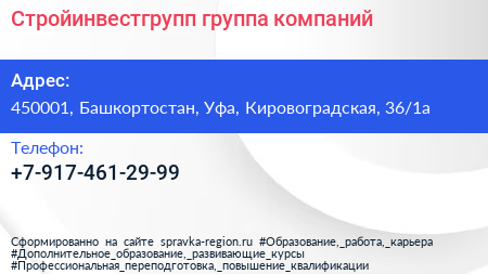 Стройинвестгрупп, группа компаний по адресу 450001, Башкортостан, Уфа, Кировоградская, 36/1а в дальнейшем Организация, размещена в следующих категориях: