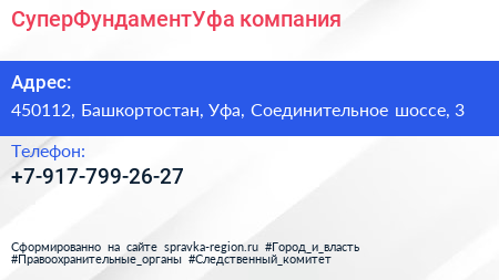 СуперФундаментУфа, компания по адресу 450112, Башкортостан, Уфа, Соединительное шоссе, 3 в дальнейшем Организация, размещена в следующих категориях: