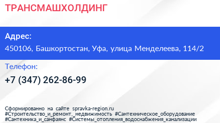 ТРАНСМАШХОЛДИНГ по адресу 450106, Башкортостан, Уфа, улица Менделеева, 114/2 в дальнейшем Организация, размещена в следующих категориях:
