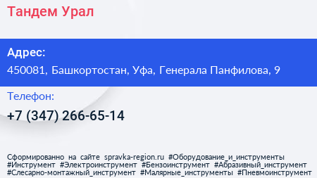 Тандем-Урал по адресу 450081, Башкортостан, Уфа, Генерала Панфилова, 9 в дальнейшем Организация, размещена в следующих категориях: