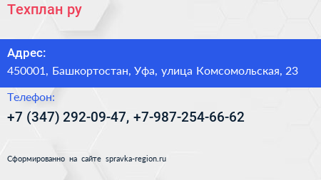 Техплан.ру по адресу 450001, Башкортостан, Уфа, улица Комсомольская, 23 в дальнейшем Организация, размещена в следующих категориях: