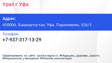 Урал, г. Уфа по адресу 450006, Башкортостан, Уфа, Пархоменко, 156/1 в дальнейшем Организация, размещена в следующих категориях: