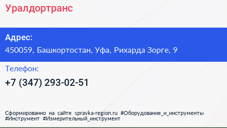 Уралдортранс по адресу 450059, Башкортостан, Уфа, Рихарда Зорге, 9 в дальнейшем Организация, размещена в следующих категориях: