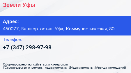 Земли Уфы по адресу 450077, Башкортостан, Уфа, Коммунистическая, 80 в дальнейшем Организация, размещена в следующих категориях: