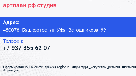 артплан.рф, студия по адресу 450078, Башкортостан, Уфа, Ветошникова, 99 в дальнейшем Организация, размещена в следующих категориях: