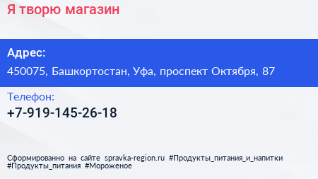 Я творю!, магазин по адресу 450075, Башкортостан, Уфа, проспект Октября, 87 в дальнейшем Организация, размещена в следующих категориях: