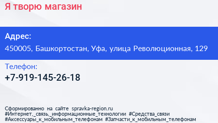 Я творю!, магазин по адресу 450005, Башкортостан, Уфа, улица Революционная, 129 в дальнейшем Организация, размещена в следующих категориях: