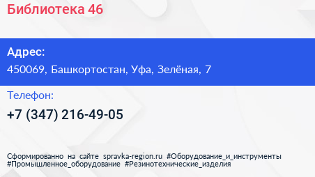Библиотека №46 по адресу 450069, Башкортостан, Уфа, Зелёная, 7 в дальнейшем Организация, размещена в следующих категориях: