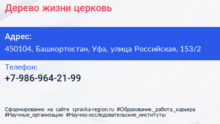 Дерево жизни, церковь по адресу 450104, Башкортостан, Уфа, улица Российская, 153/2 в дальнейшем Организация, размещена в следующих категориях: