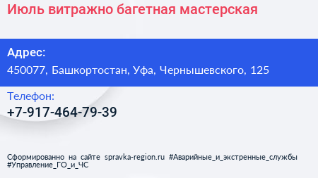 Июль, витражно-багетная мастерская по адресу 450077, Башкортостан, Уфа, Чернышевского, 125 в дальнейшем Организация, размещена в следующих категориях: