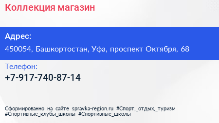 Коллекция, магазин по адресу 450054, Башкортостан, Уфа, проспект Октября, 68 в дальнейшем Организация, размещена в следующих категориях: