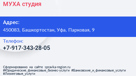 МУХА, студия по адресу 450083, Башкортостан, Уфа, Парковая, 9 в дальнейшем Организация, размещена в следующих категориях: