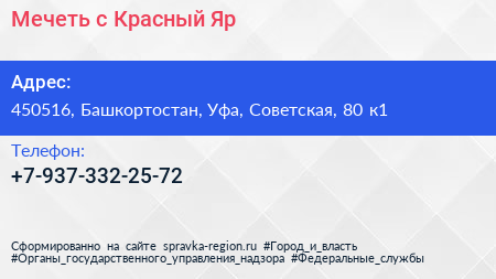 Мечеть, с. Красный Яр по адресу 450516, Башкортостан, Уфа, Советская, 80 к1 в дальнейшем Организация, размещена в следующих категориях: