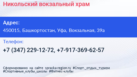 Никольский вокзальный храм по адресу 450015, Башкортостан, Уфа, Вокзальная, 39а в дальнейшем Организация, размещена в следующих категориях: