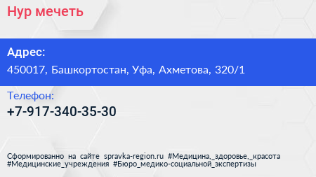 Нур, мечеть по адресу 450017, Башкортостан, Уфа, Ахметова, 320/1 в дальнейшем Организация, размещена в следующих категориях:
